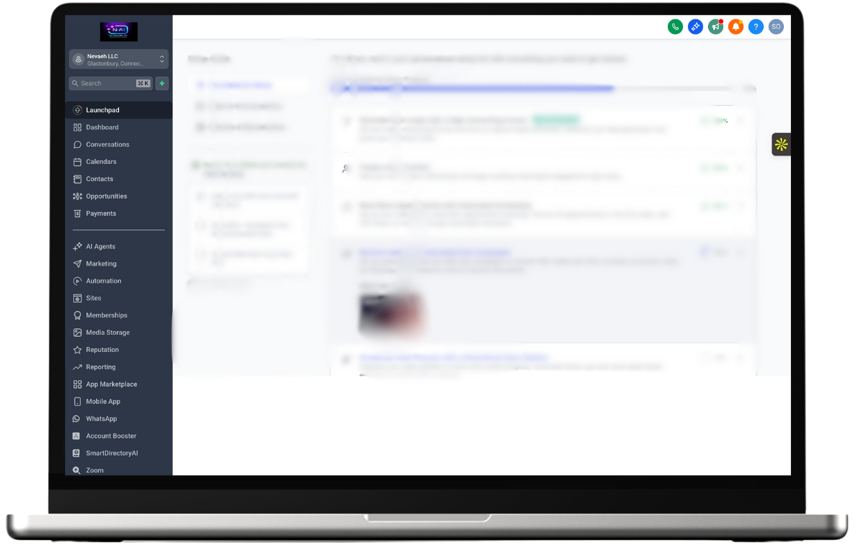 Unify your entire business in one platform — from lead capture to automation. Nevaeh AI helps you scale faster without juggling multiple tools or systems.